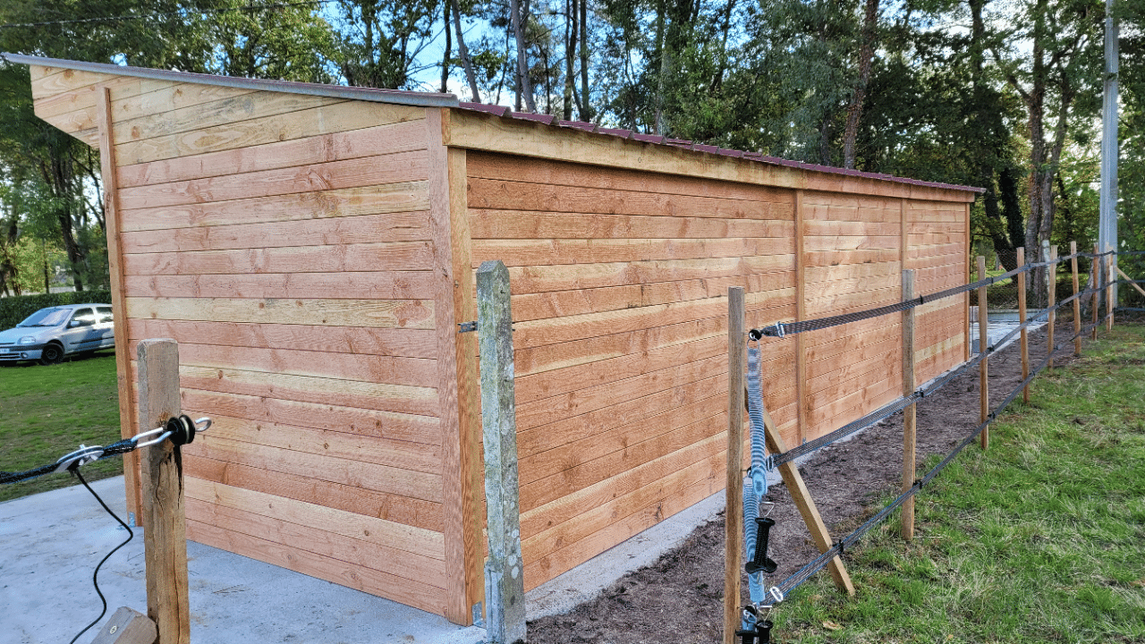 La configuration en ligne permet d’optimiser l’espace au sol, facilitant la circulation et l’accès aux boxes depuis une allée centrale. La toiture en bac acier anti‑condensation protège efficacement contre la pluie et l’humidité, avec des options d’isolation supplémentaires disponibles (10 mm ou 40 mm) pour un confort maximal.